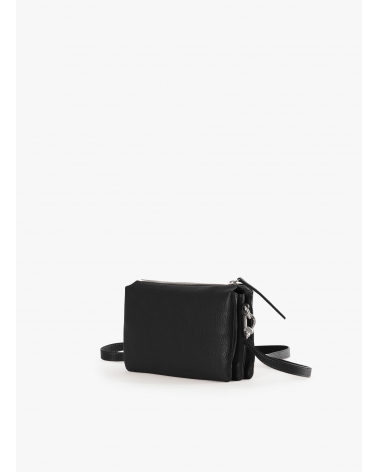 Umhängetasche mit drei Innenfächer aus Leder in Schwarz