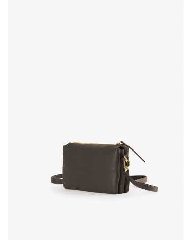 Umhängetasche mit drei Innenfächer aus Leder in Braun