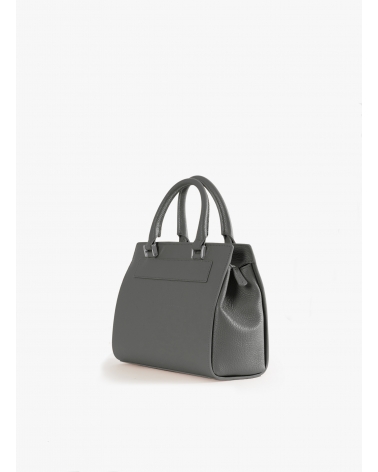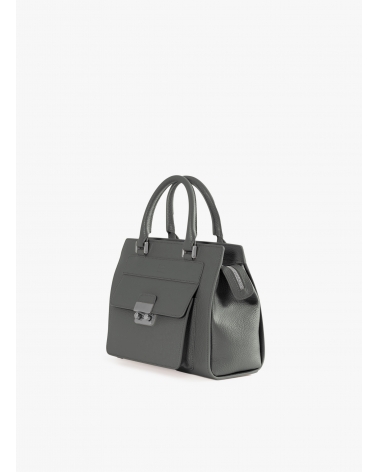 Steife Tasche aus Leder mit Metallverschluss in Grau