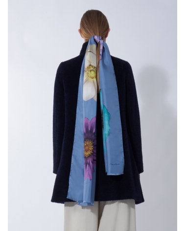 Schal mit Blumenmuster aus reinem Seidentwill in Hellblau