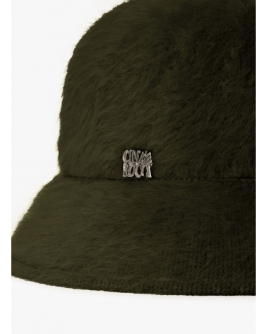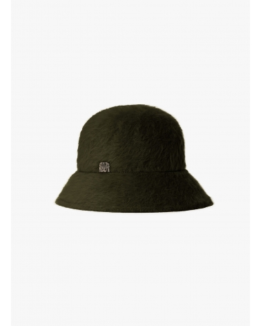 Cloche-Hut aus Wolle mit Felloptik in Militärgrün