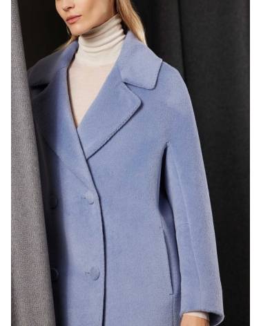 Zweireiher Langermantel aus Wolle und Alpaka in Blau/Violett