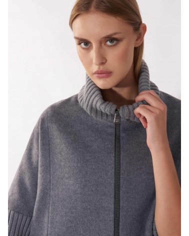 Cape mit Reißverschluss aus reiner Wolle mit Zobel-Effekt in Grau