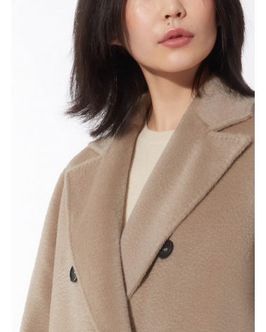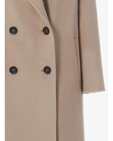 Langer zweireiher Mantel mit 6 Knöpfen aus Alpaka und Wolle in Beige