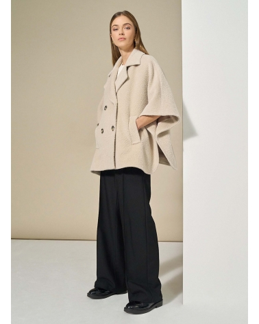 Zweireihes Cape aus Wolle und Alpaka in Beige