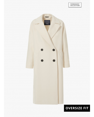 Oversized zweireiher Mantel aus reiner Wolle in Weiß