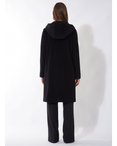 Gerade geschnittener Parka mit Kapuze aus Wolle und Cashmere in Schwarz