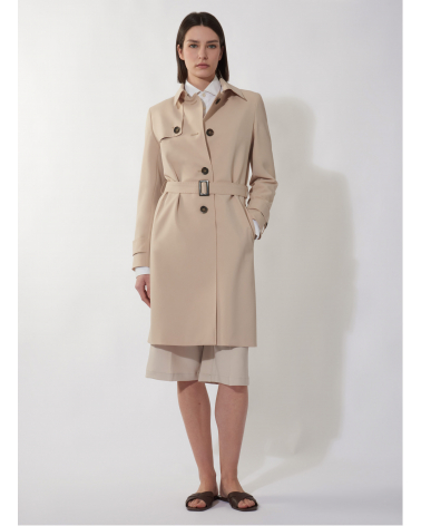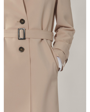 Einreiher Trenchcoat aus technischem Stoff mit maßgeschneiderten Nähten in beige
