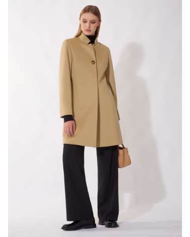 Mantel mit umklappbarem Reverskragen aus reiner Wolle gefertigt in light Camel