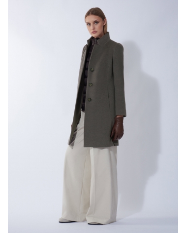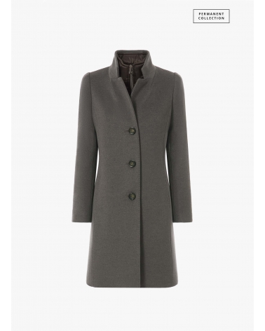 Mantel mit abnehmbarer Nylon-Weste aus reiner Wolle in Dunkeltaupe