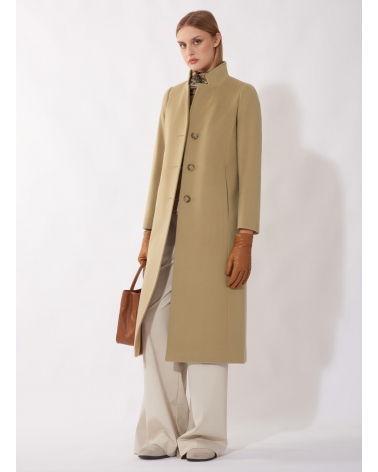 Maxi Wollmantel mit abnehmbarer Nylon-Weste in Camel