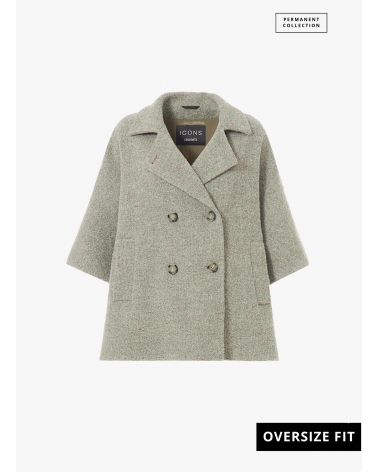 Zweireihes Cape aus Bouclé- Stoff in Beige