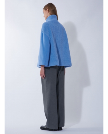 Kurzmantel mit kontrastreicher Stoffstruktur aus Wolle und Alpaka in Hellblau