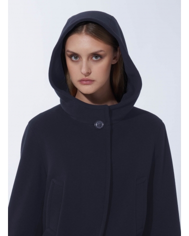 Parka mit Kapuze und doppelten Taschen aus Wolle und Cashmere in Blau