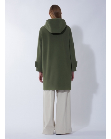 Parka mit Kapuze und doppelten Taschen aus Wolle und Cashmere in Militärgrün