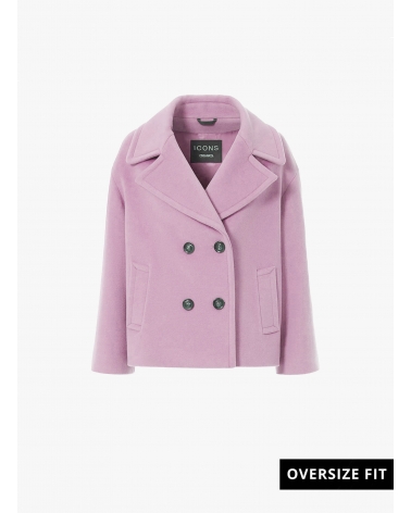 Zweireiher Oversized Kurzmantel mit Maxirevers aus Wolle in Rosa