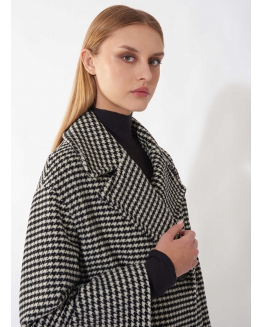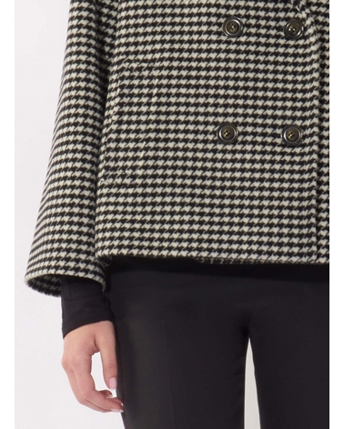 Zweireiher Kurzmantel mit Pied-de-Poule-Muster aus reiner Wolle in Schwarz