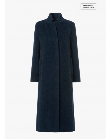 Maxi Mantel mit umklappbarem Reverskragen aus Wolle und Alpaka in Marineblau