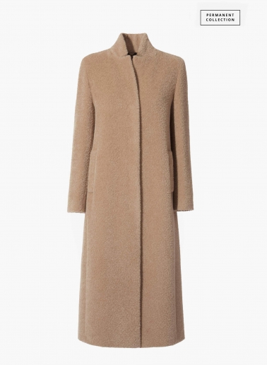 Maxi Mantel mit umklappbarem Reverskragen aus Wolle und Alpaka in Dunkeltaupe
