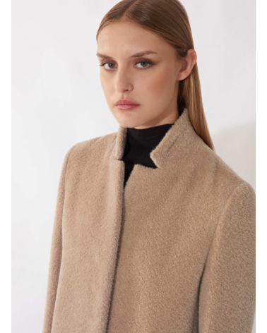 Maxi Mantel mit umklappbarem Reverskragen aus Wolle und Alpaka in Dunkelbeige