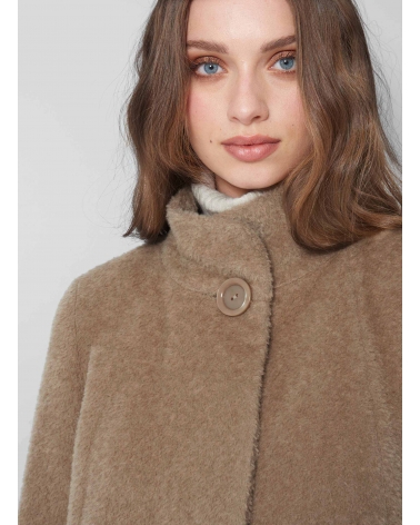 Ausgestellter Mantel aus Wolle und Alpaka in dunkel Beige