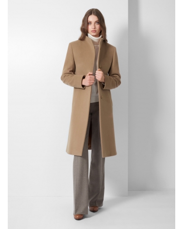 Stehkragen Mantel aus Wolle und Cashmere in dunkel Camel