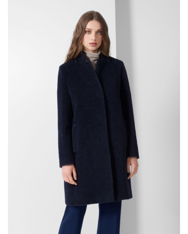 Mantel mit umklappbarem Reverskragen aus Wolle und Alpaka in Blau