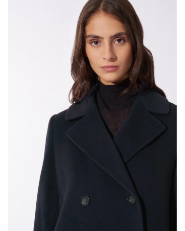 Maxi zweireiher Mantel mit 6 Knöpfen aus Wolle und Cashmere in Blau