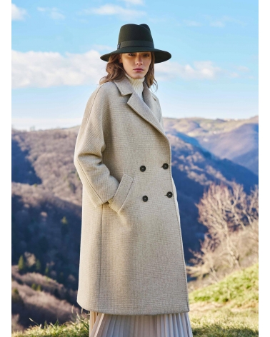 Zweireiher Oversized Mantel mit feinem Pied-de-Poule-Muster in Beige