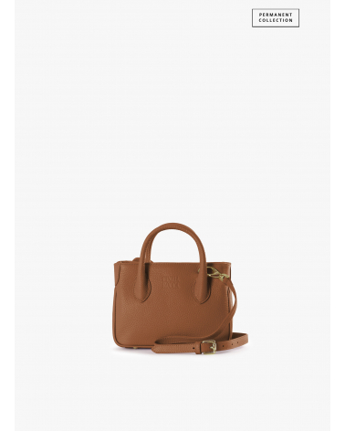 Mini tobacco color genuine leather tote bag