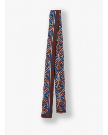 Brown wool scarf with geometric floral pattern