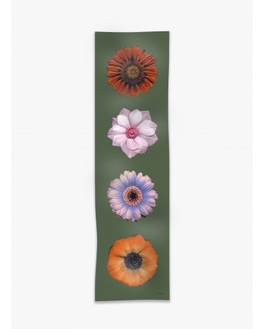 Green pure silk twill scarf with floral pattern