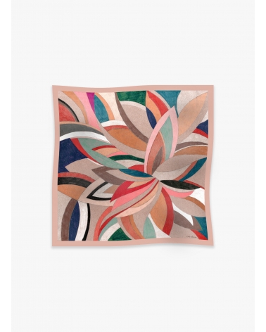 Maxi pink wool and silk scarf with stylized pattern