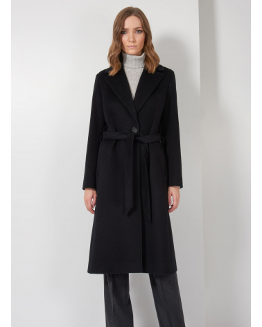 Belted fitted black pure wool coat