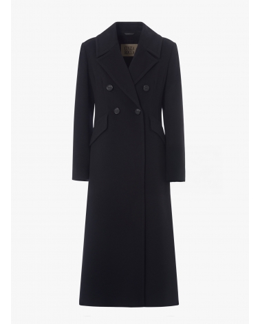 Maxi double breasted black pure wool frock coat