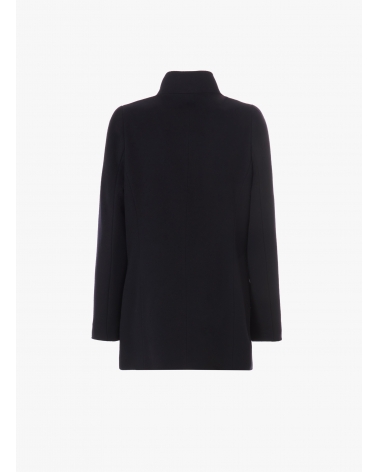 Short blue pure wool coat with detachable nylon bib