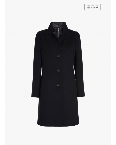 Black pure wool coat with detachable nylon bib