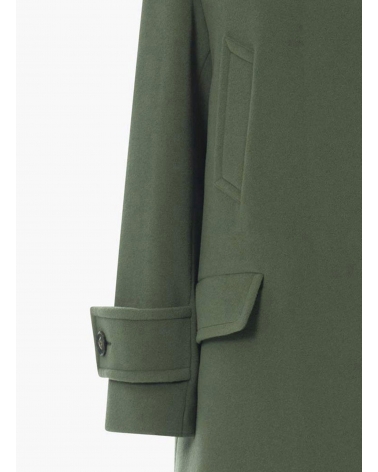 Hooded military green wool and cashmere parka with double pockets