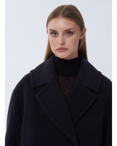 Black double breasted wool and cashmere coat with metal buttons with logo