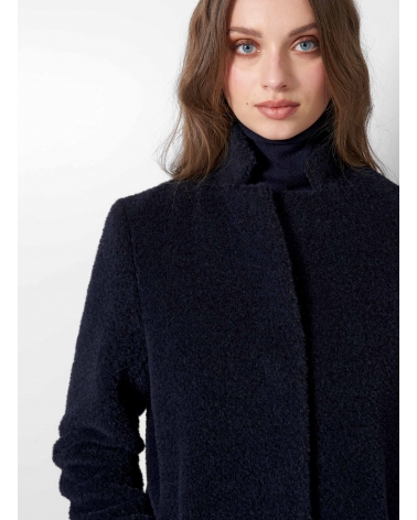 Maxi blue wool and alpaca coat with inverted notch collar