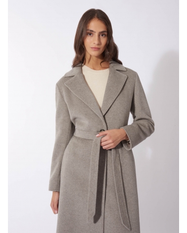 Belted fitted beige wool coat