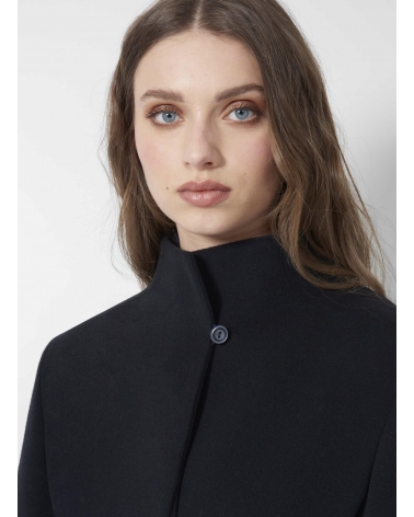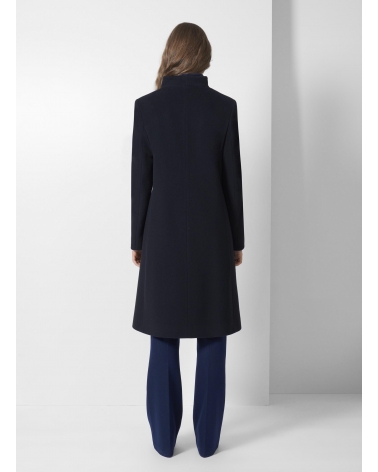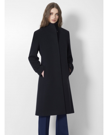Blue wool and cashmere coat with high stand up collar