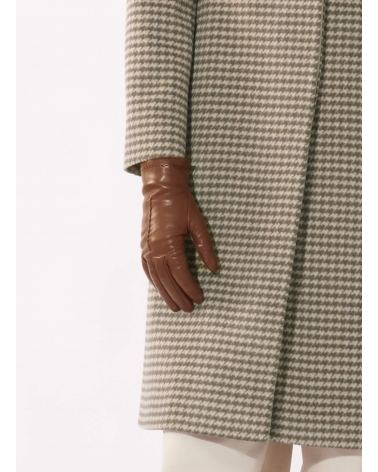 Dark taupe pure wool houndstooth coat with high stand up collar