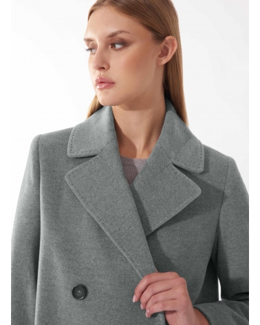 Maxi 6 buttons double breasted light grey wool and cashmere coat