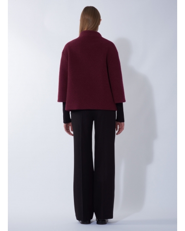 Short burgundy wool coat with 3/4 sleeves