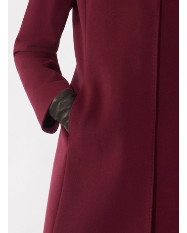 Inverted notch collar burgundy coat crafted with pure wool