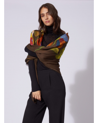 Sciarpa in modal e cashmere con disegno floreale marrone