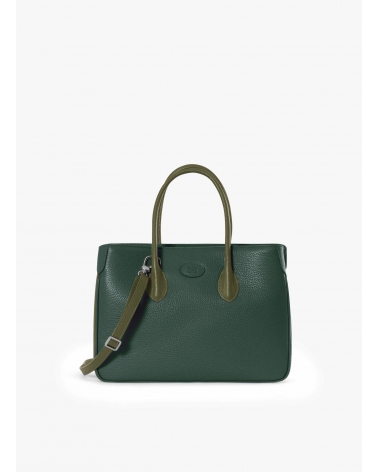 Borsa Tote in pelle bicolore verde militare