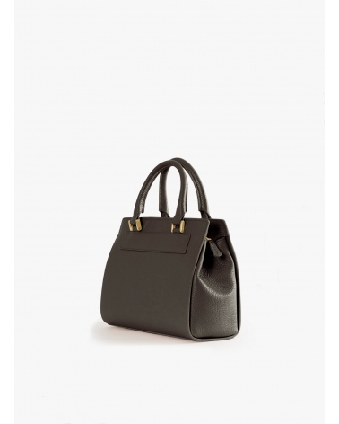 Borsa rigida in pelle marrone con chiusura in metallo