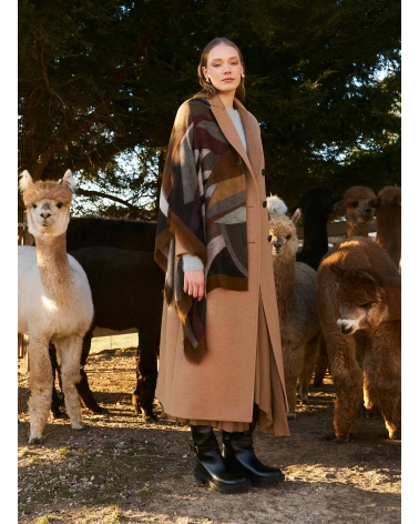 Maxi foulard in lana e seta con disegno stilizzato color tabacco